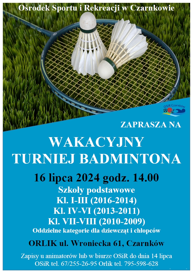 Miłośników dobrej zabawy na świeżym powietrzu zapraszamy na wakacyjny turniej badmintona🏸nagrody karnety wstepnu na basen. zatem kto chętny?