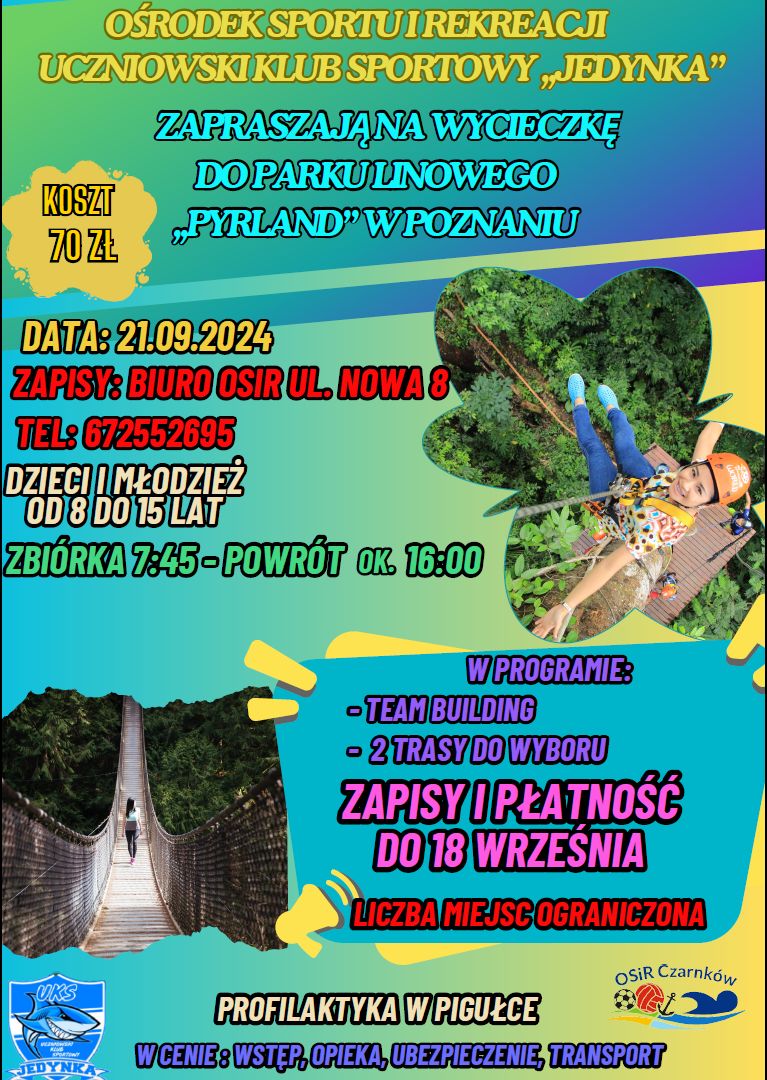 Koszt wyjazdu: 70,00 zł, w tym: opieka, ubezpieczenie, transport, bilet wstępu.