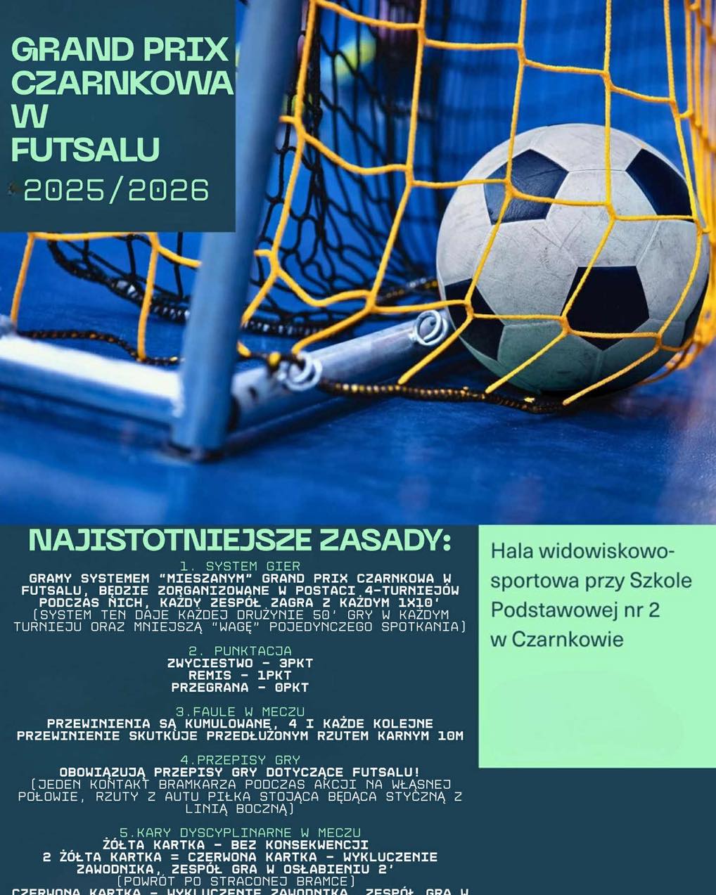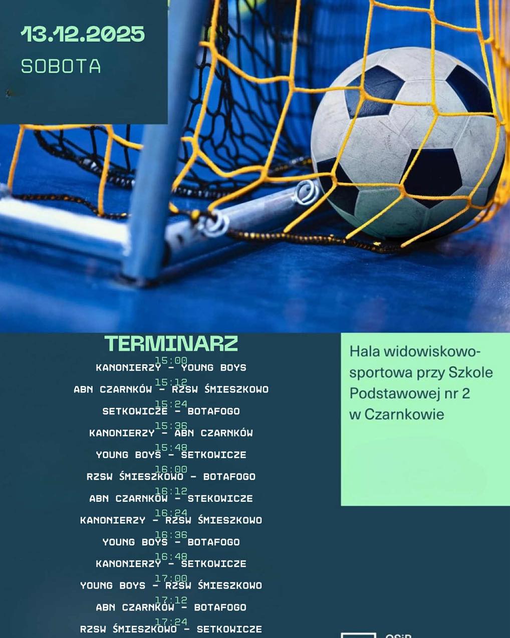 Już jutro, w sobotę 13.12.2025, w Hali widowiskowo-sportowej przy Szkole Podstawowej nr 2 w Czarnkowie przeżyjemy piłkarskie emocje na najwyższym poziomie!