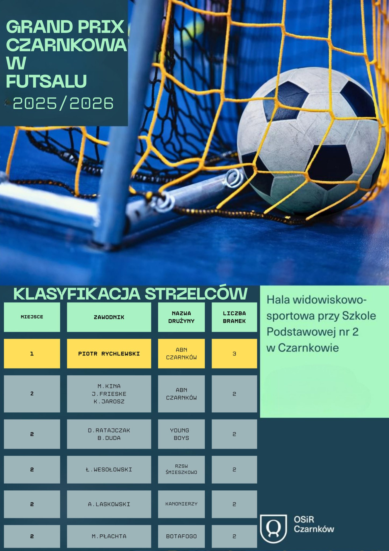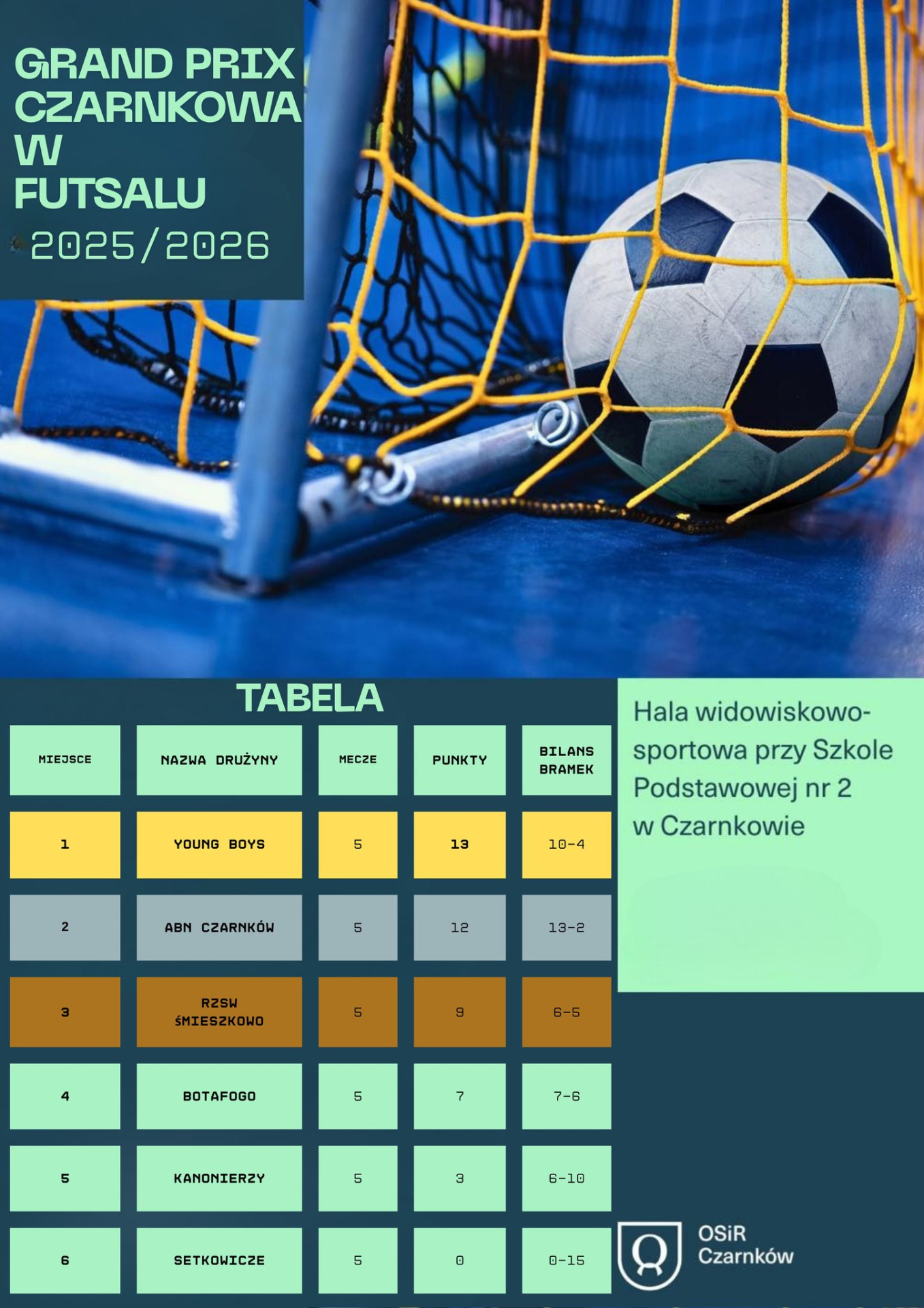 tabele Grand Prix Czarnkowa w Futsalu
